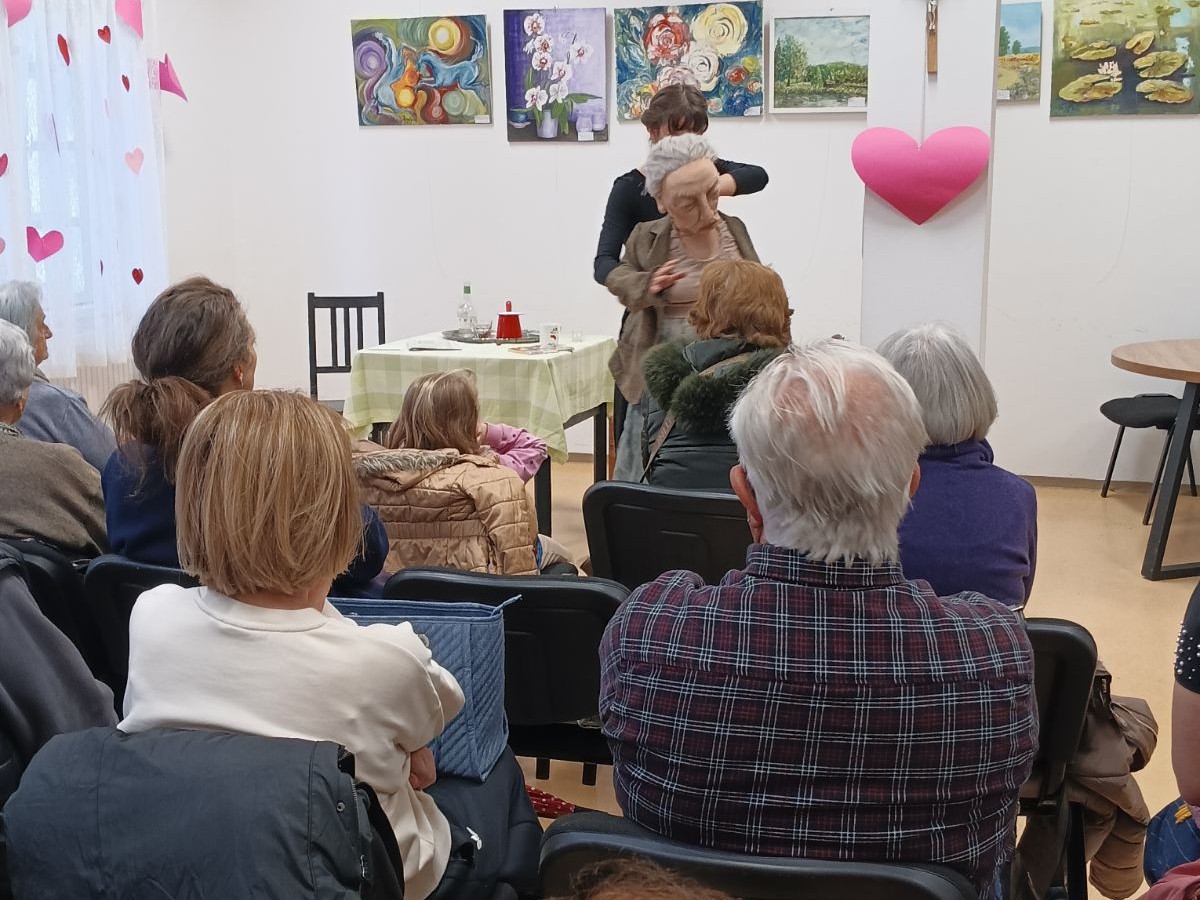 A zatim je u Dnevni boravak stigla i kazališna predstava, u okviru 16. Lutkokaza, koji potpisuje Kazalište Virovitica, a koja je korisnicima progovorila o jako poznatoj temi; usamljenosti. Predstava koja je inače završni rad studentice Ive Radić iz AUK Koraljka dotaknula je srca gledatelja, a među kojima je bilo i onih mlađih, koji su suosjećajno baki ili djedu stisnuli ruku i pod praznicima ublažili nekad sumorne i teške umirovljeničke dane.